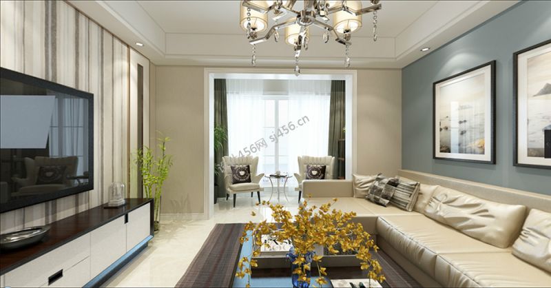 现代简约89平米三居室客厅背景墙装修效果图