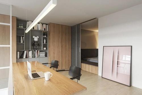 3、另外我们还发现有一些挑高loft的房子的通透性不怎么好,主要是因为三面都是墙,只有一面有窗户,但是我们又想把房子做一些小隔间,把空间利用起来。所以要想进行隔断,较好是在靠近门口的地方,避免放在窗户那里,这样会降低阳光以及通风的效果。