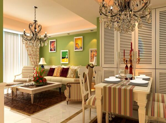 英伦风格的港式装修营造的就是高贵典雅的古韵氛围。它是将香港的传统装修元素与英伦元素融合在一起,比较强调华丽的装饰,色彩也被较为奢华浓烈。经常使用的元素就是客厅顶部的大型灯池,绚丽的灯光配上枝形的水晶吊灯。窗户的顶部也多是做成半圆形,并且在边缘会有精美的雕花。厚重的罗马窗帘以及充满艺术的油画都是在装修中起到了很好的点缀。