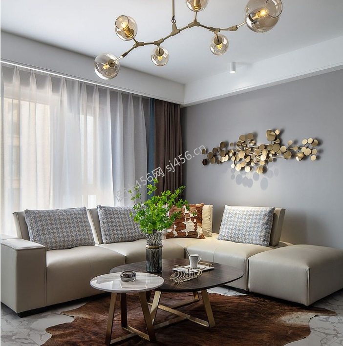 现代风格110平米二居室客厅吊灯造型装修效果图