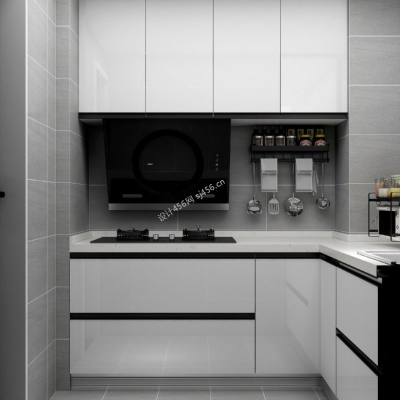 88平现代简约风格厨房置物架效果图