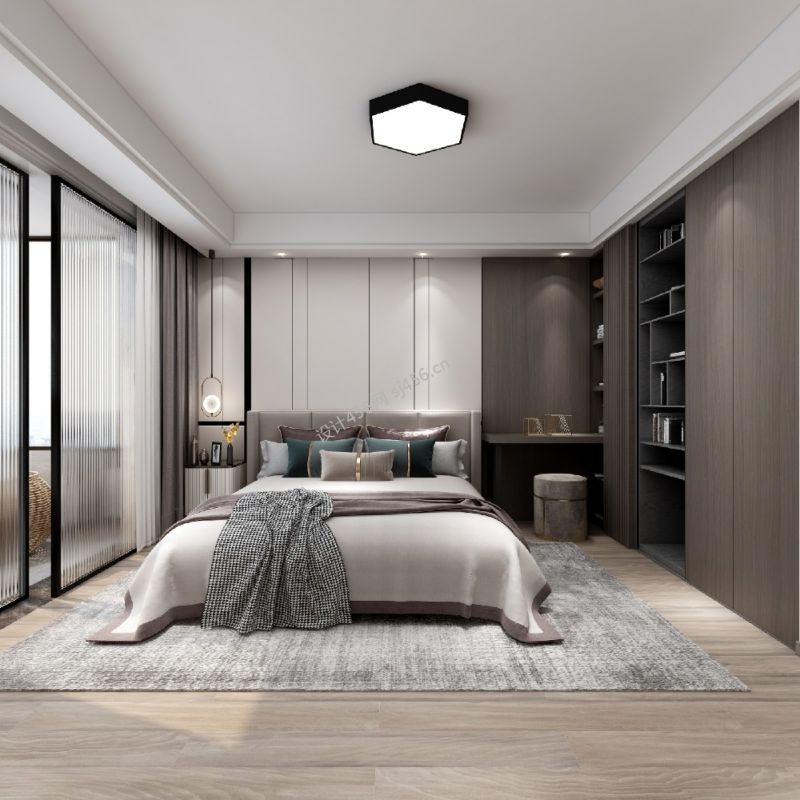 88平现代简约风格卧室地毯效果图