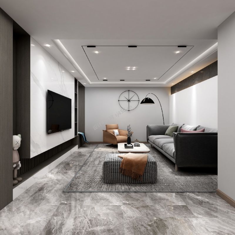 88平现代简约风格客厅地毯效果图