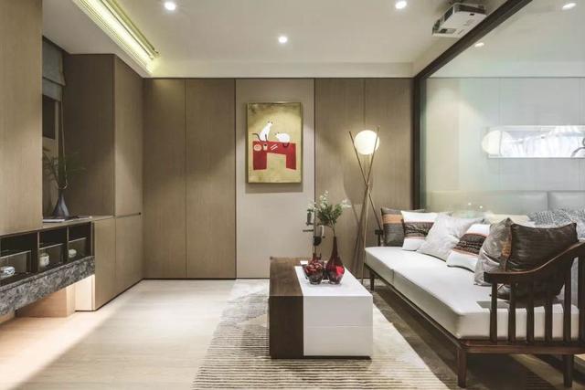 沙发和茶几有种现代中式风的格调,看起来沉稳大气。装饰画为空间增加了文艺气息~
