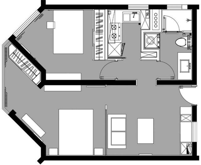 本篇文章为大家分享一套面积为77平方的简约两居室装修案例,本案户型很不规则,有点偏,但在设计师的巧妙设计下,最终呈现出来的空间效果时尚又好看,一起来欣赏一下吧~