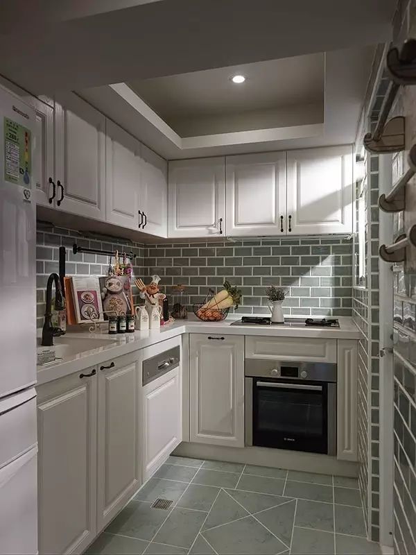 很多人在厨房装修时,瓷砖只贴到半墙。但其实,贴全墙的瓷砖,才有效防止油烟。贴了瓷砖不会让墙壁变黑,而且容易清洗,不怕水。用清洁剂轻轻一喷一擦解决。