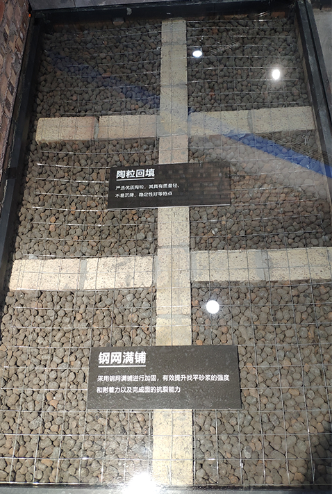 田字格回填工艺 以砌砖“田”字型为框架,气到整体受力支撑作用,并严选优质陶粒回填,防沉降防漏水,还采用钢网满铺,有效提升找平砂浆的强度和附着力以及完成面的抗裂能力。