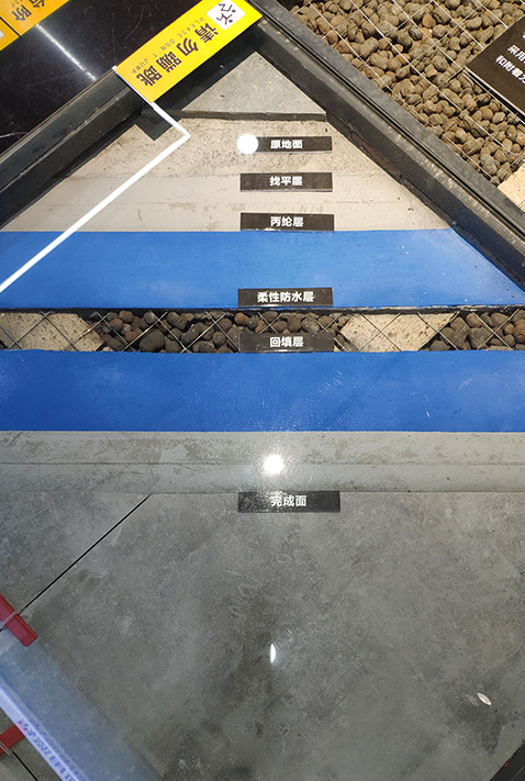 地面防水工艺: 多重工序加持能有效避免排水管道漏水。回填前清理基层做东方雨虹的柔性防水,然后做保护层,再回填,回填后再做丙纶防水!细节感人!
