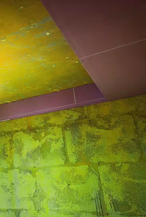 吊顶整板工艺石膏板采用“T”型或“L”型整板切割,防止接缝处挤压变形导致乳胶漆开裂