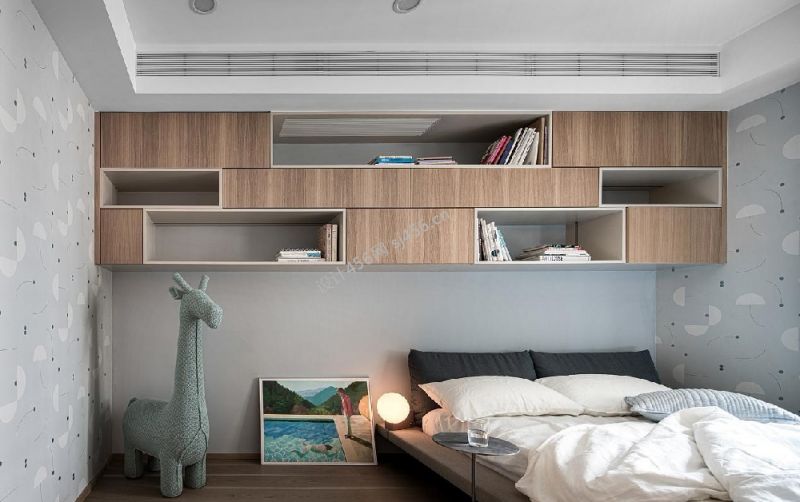 92平米三居室卧室书柜墙设计装修效果图
