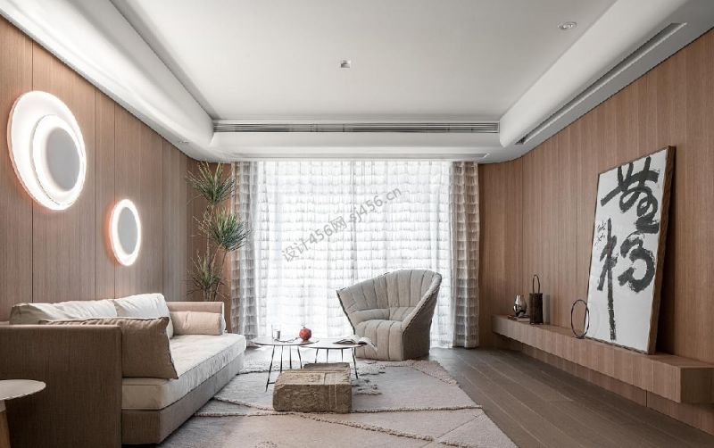 日式风格92平米三居室客厅墙柜设计装修效果图