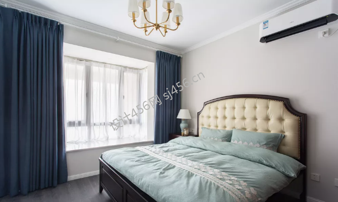美式风三居室102平米卧室床头软包装修设计