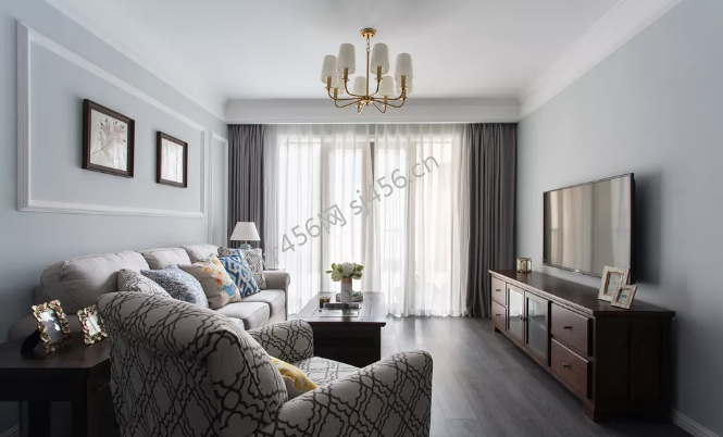 美式风三居室102平米客厅电视柜装修设计