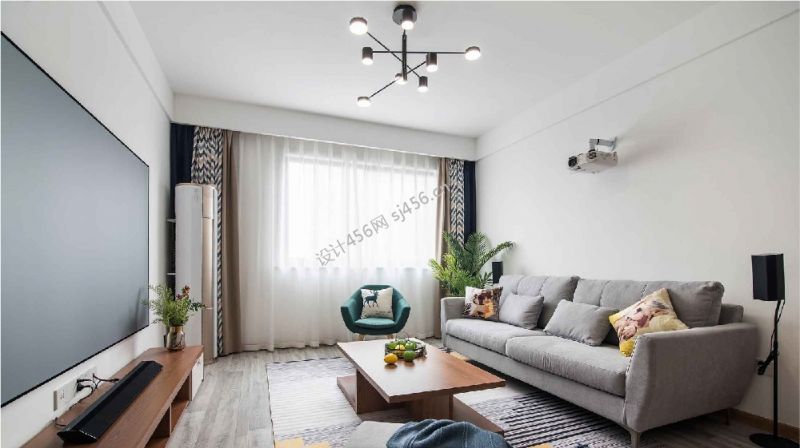 北欧风格58平米二居室客厅电视柜地柜装修效果图