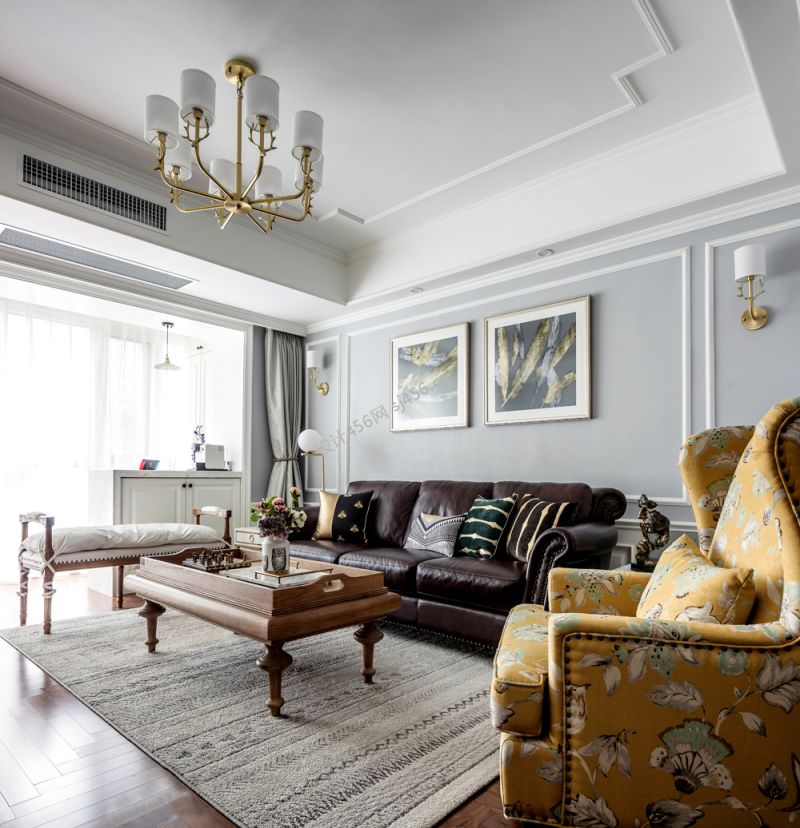 美式风格118平米三居室客厅壁灯装饰装修效果图