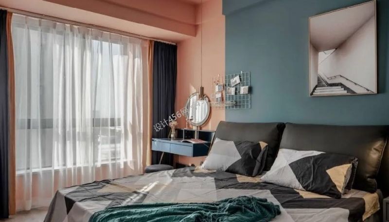 北欧风二居室卧室床头背景墙挂画装修设计图