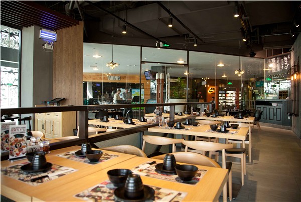 由于港式茶餐厅面对的消费群体是普通大众一族,所以在设计时可以与现在越来越奢华富丽的装修思路反其道而行之,没有必要追求高级的装修。通常情况下,港式茶餐厅的装修必要简洁明亮,给人以自然舒适之感,在靠近街道的一面,可以装上透明的玻璃,既可以让街道上的行人看到餐厅里的用餐者和餐厅内环境,还可以让餐厅里面的人关注一下来往的行人,起到很好的宣传效果。餐厅内的光线一定要明亮,能引起行人的关注和用餐者的食欲,可以多选用一些暖色调的灯光和明亮的装饰材料。