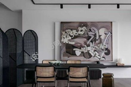 轻奢风格110平米餐厅背景墙装饰画装修图
