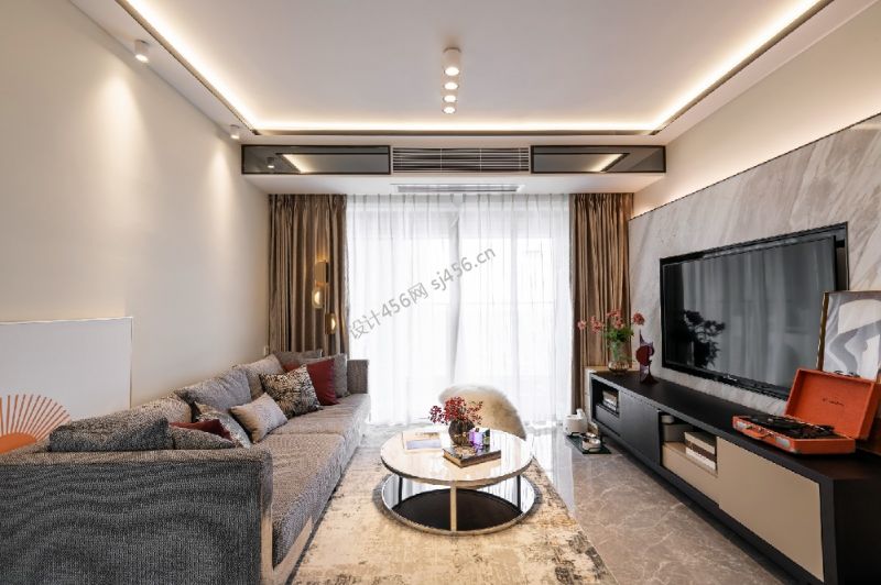 现代风格105平米三居室客厅吊顶装饰装修设计图