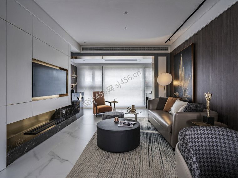 现代风格三居室102平客厅地毯装修效果图