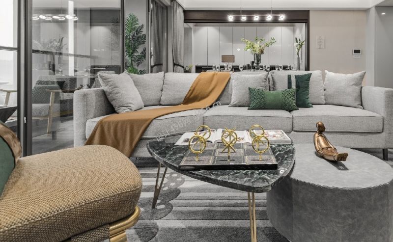 轻奢风格130平米三居室客厅沙发地毯设计效果图