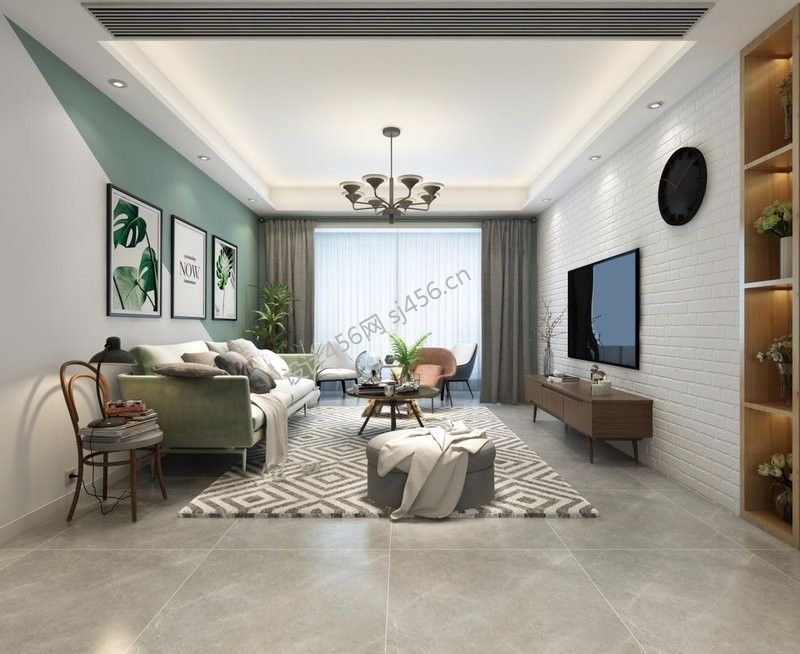 简约风格89平米二居室客厅地毯装修设计图片