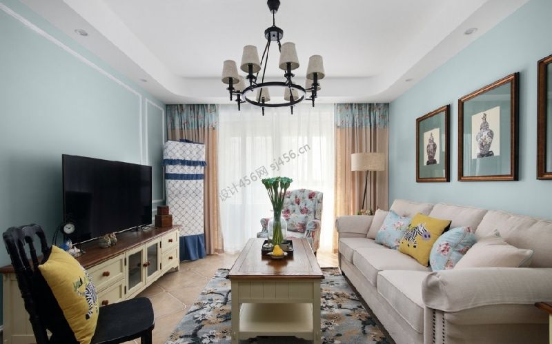 美式风格93平米二居室客厅吊灯灯具装修效果图