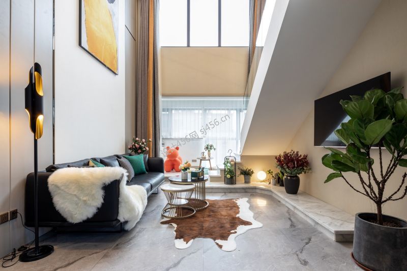 轻奢风格220平米复式客厅窗帘装饰装修效果图