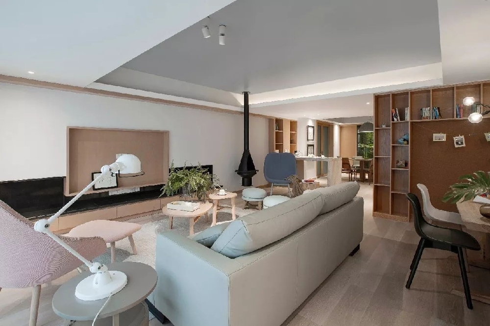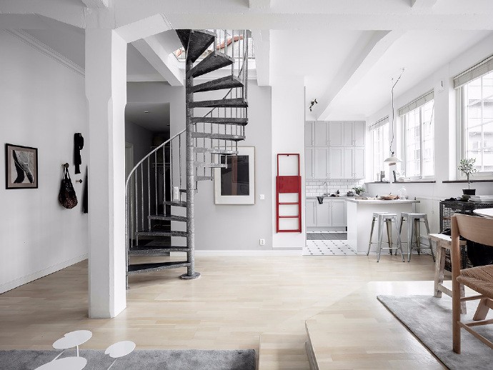 3、过道设计技巧:过道因为来往的人比较多,地面装修尽量用耐磨的容易清洁的地板,如果是有花纹的地板,花纹尽量横向排放。地面的颜色与顶部不同,略深于顶部,用以区分空间。过道上方有横梁的,可以采用吊顶设计,用以隐藏横梁。吊顶时尽量选择简单流畅的造型,以线性图案为佳,横向排布,可以体现韵律和节奏。顶部颜色尽量是浅色系的,避免造成空间压迫感,吊顶设计要与灯光相协调好。
