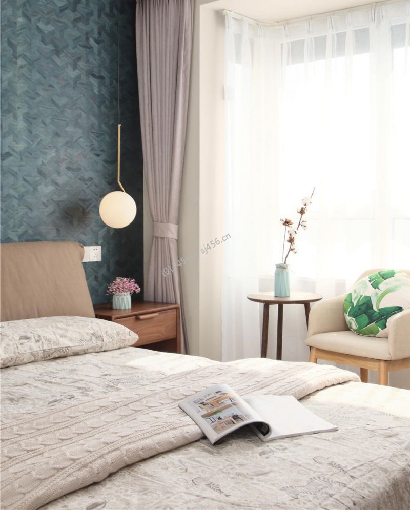 100平米三居室卧室床头背景墙壁纸装修效果图