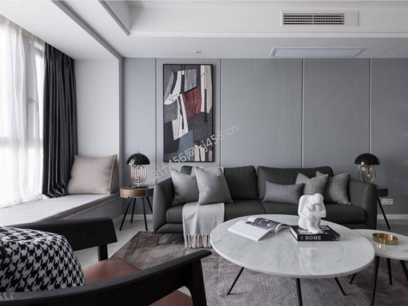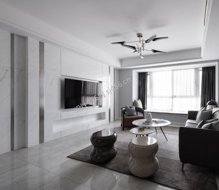 现代风格107平米三居室客厅沙发背景墙装修效果图