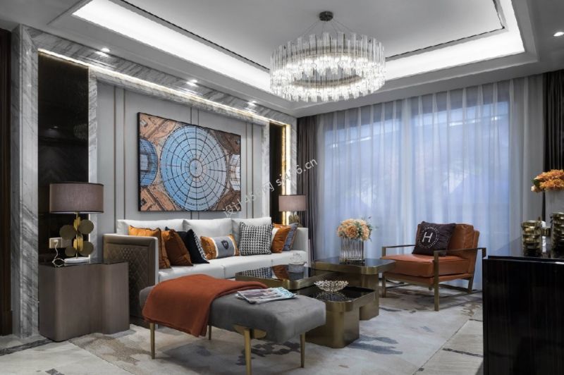 轻奢风格172平米四居室客厅沙发背景墙装饰设计效果图