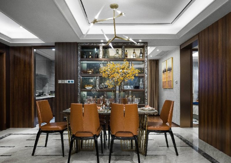 轻奢风格172平米餐厅酒柜设计效果图