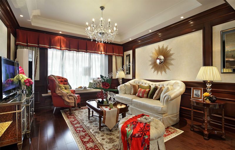 泽科星城凌云御府美式140平三居室客厅装修案例