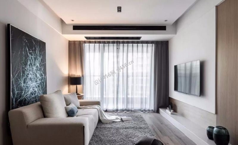 极简风格86平米三居室客厅沙发背景墙装修效果图