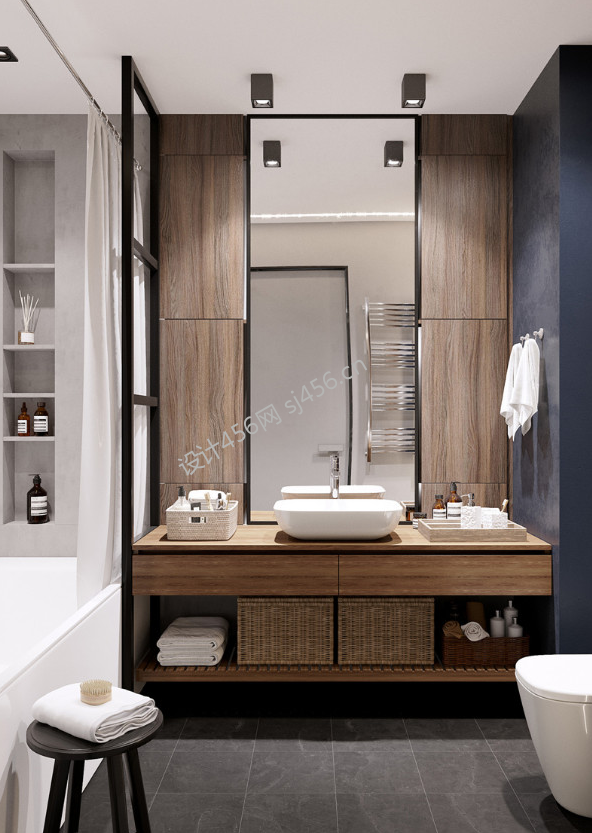 现代风格106平卫生间浴缸设计装修效果图
