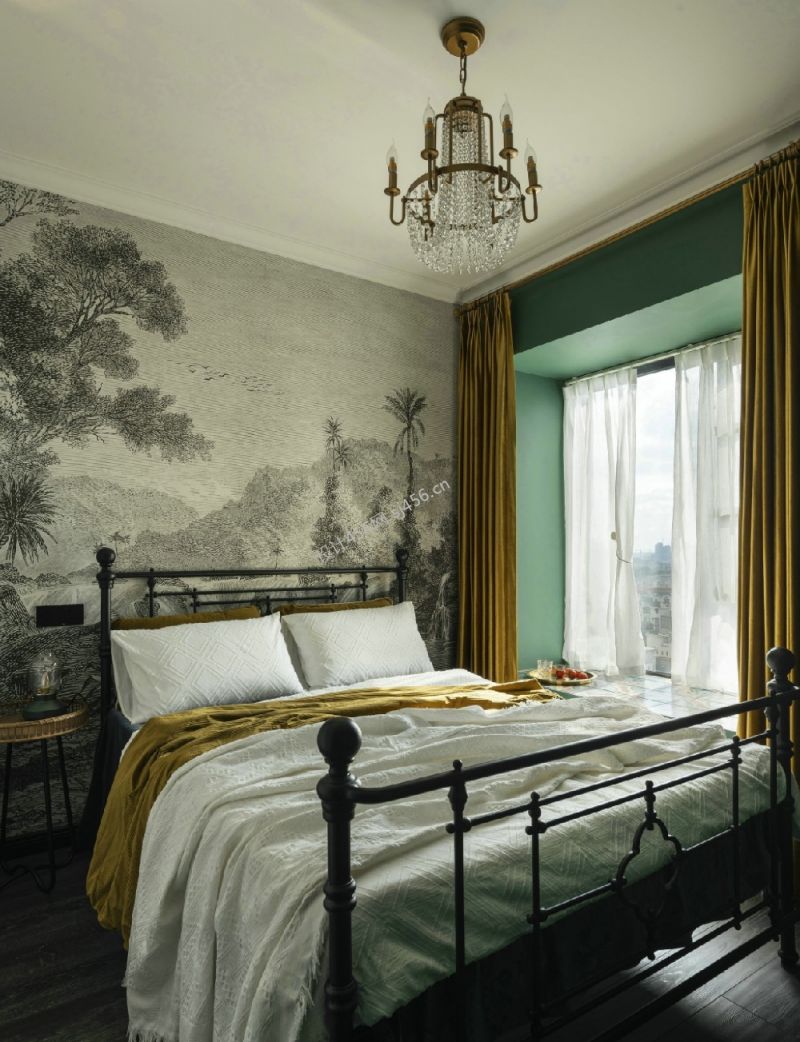 混搭风格140平米卧室床头背景墙壁画装修效果图