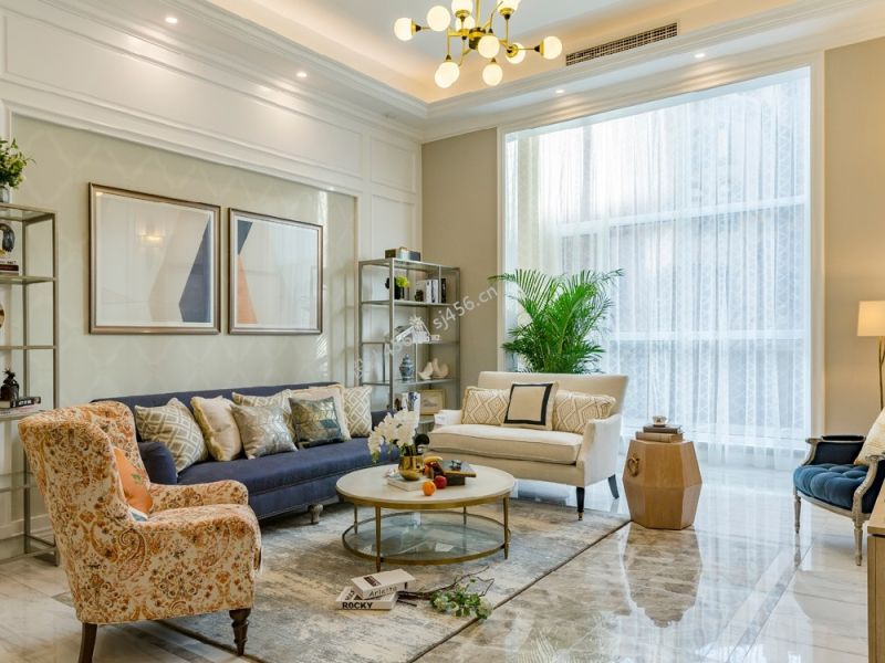 详情美式风格170平米三居室客厅沙发背景墙装修效果图