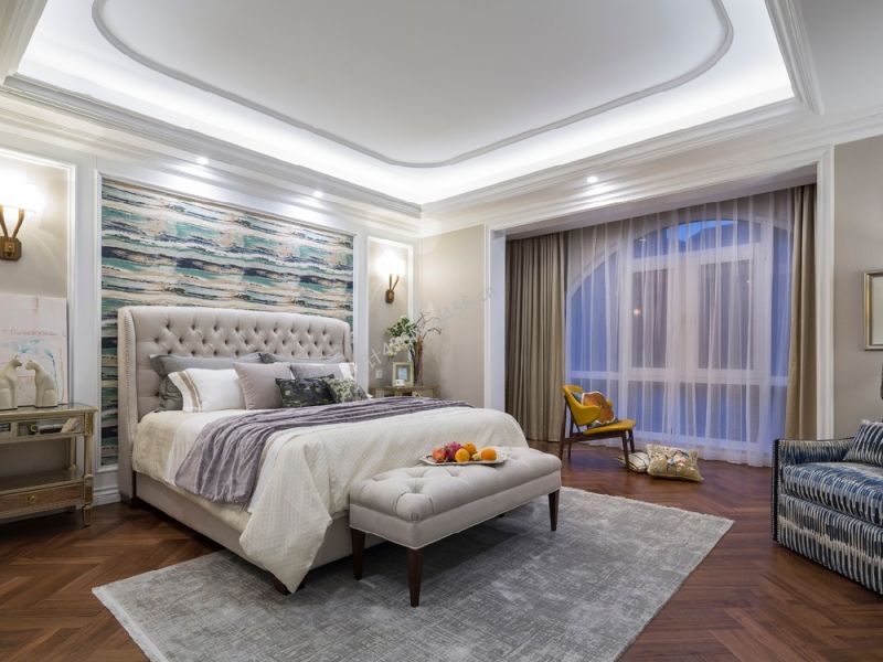 170平米三居室卧室床头背景墙装修效果图