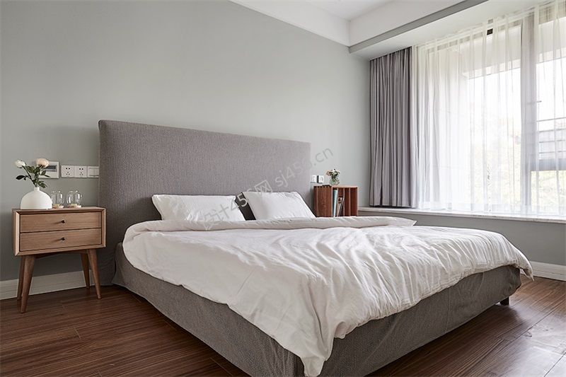 鹏欣水游城138平米现代简约三居卧室装修设计效果图
