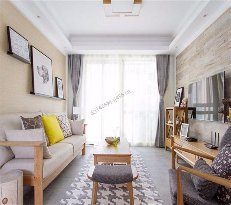 设计理念: 电视背景墙与沙发背景墙,都采用了不同花色的护墙板,仿佛嗅到了大自然的芳香 电视背景墙与沙发背景墙,都采用了不同花色的护墙板,仿佛嗅到了大自然的芳香