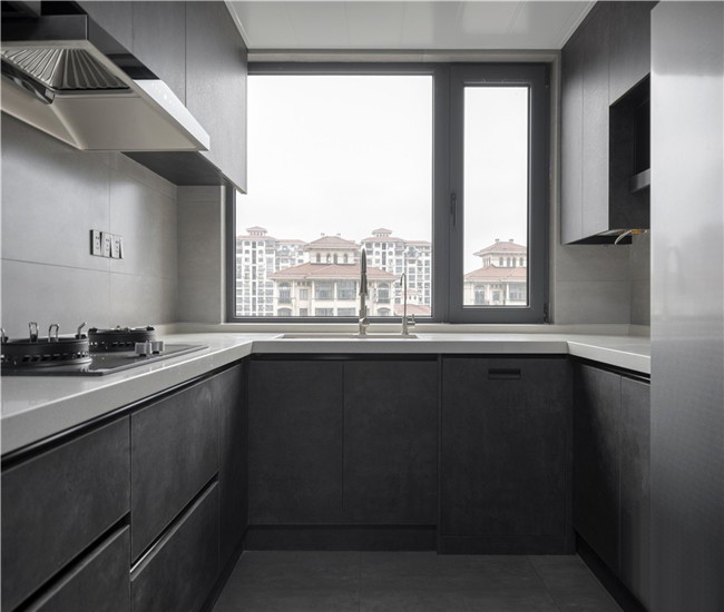 厨房,双饰面橱柜相较于普通材质更为耐磨、耐用,其纹理及色泽也让空间的品质感得到保障。