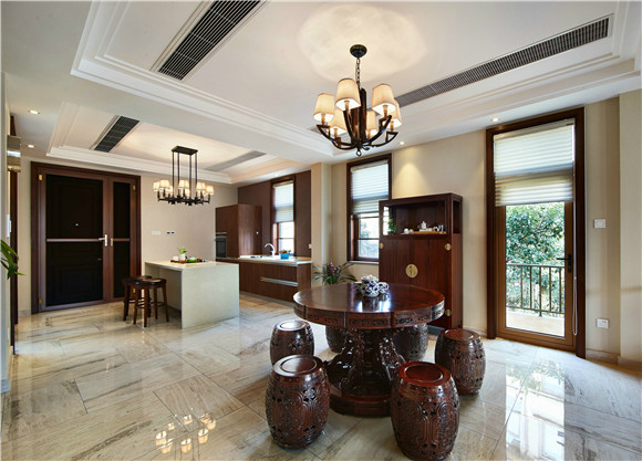 厨房格局如何装修设计?不管是大户型还是小户型都比较通用的就是开放式厨房。开放式的厨房设计,在年轻人的房子装修中也越来越多,若年轻人比较少在家做饭的话,尤其是在小户型想要实现大空间感的时候,宽敞大方开放式厨房显然是一个舒适惬意选择。厨房操作台与电器柜围绕餐桌椅布置,原本局促的厨房瞬间变大变宽敞。