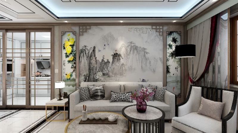 136平新中式风格客厅背景墙装修效果图