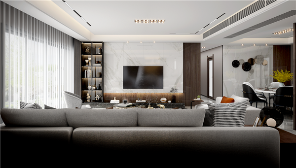 在硬装设计上以现代、时尚、摩登的元素贯穿整体,拒绝复杂的装饰造型,注重细节的品质和整体的设计感。