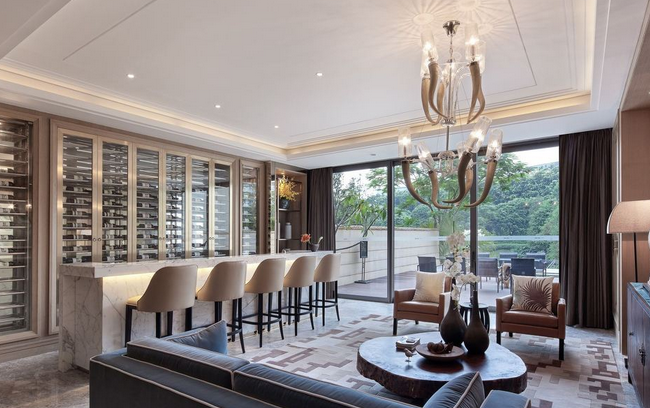 3、客厅的高度处理。别墅的客厅比较大,是非常重要的场所,因此,在设计时,要注意对空间整体和局部的把控。而在进行别墅高层处理时,要增加辅助照明、墙面修饰、栏板形式等手法来丰富别墅的空间感。