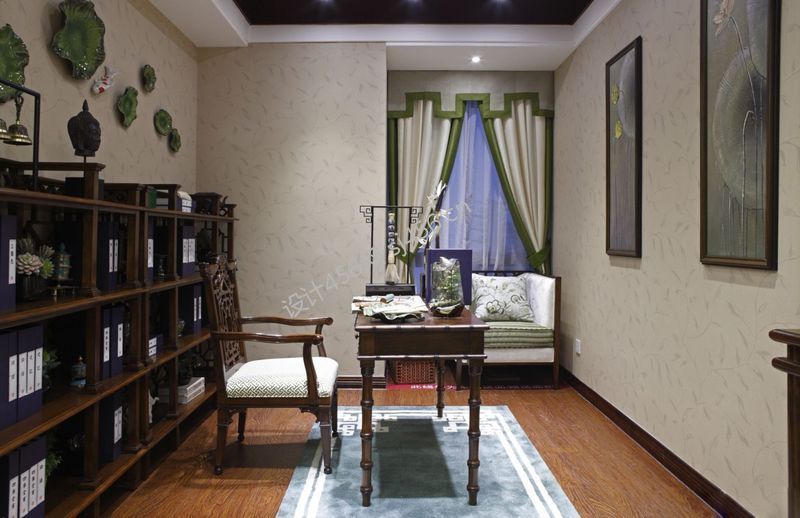 125平米中式三居书房装修效果图