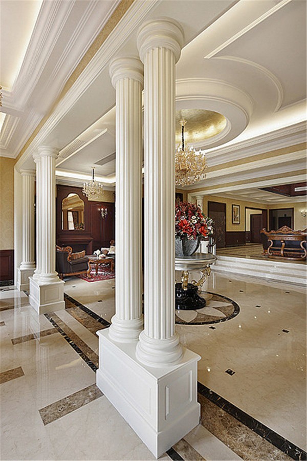 在室内设计中,选择罗马柱风格时,应注意:罗马柱的风格应与室内装饰环境相协调。例如,如果室内装饰主要是简单和优雅的,你可以选择简单的欧洲罗马柱;例如,室内装饰的特点是豪华和华丽,可以由雕像,雕塑和其他风格。