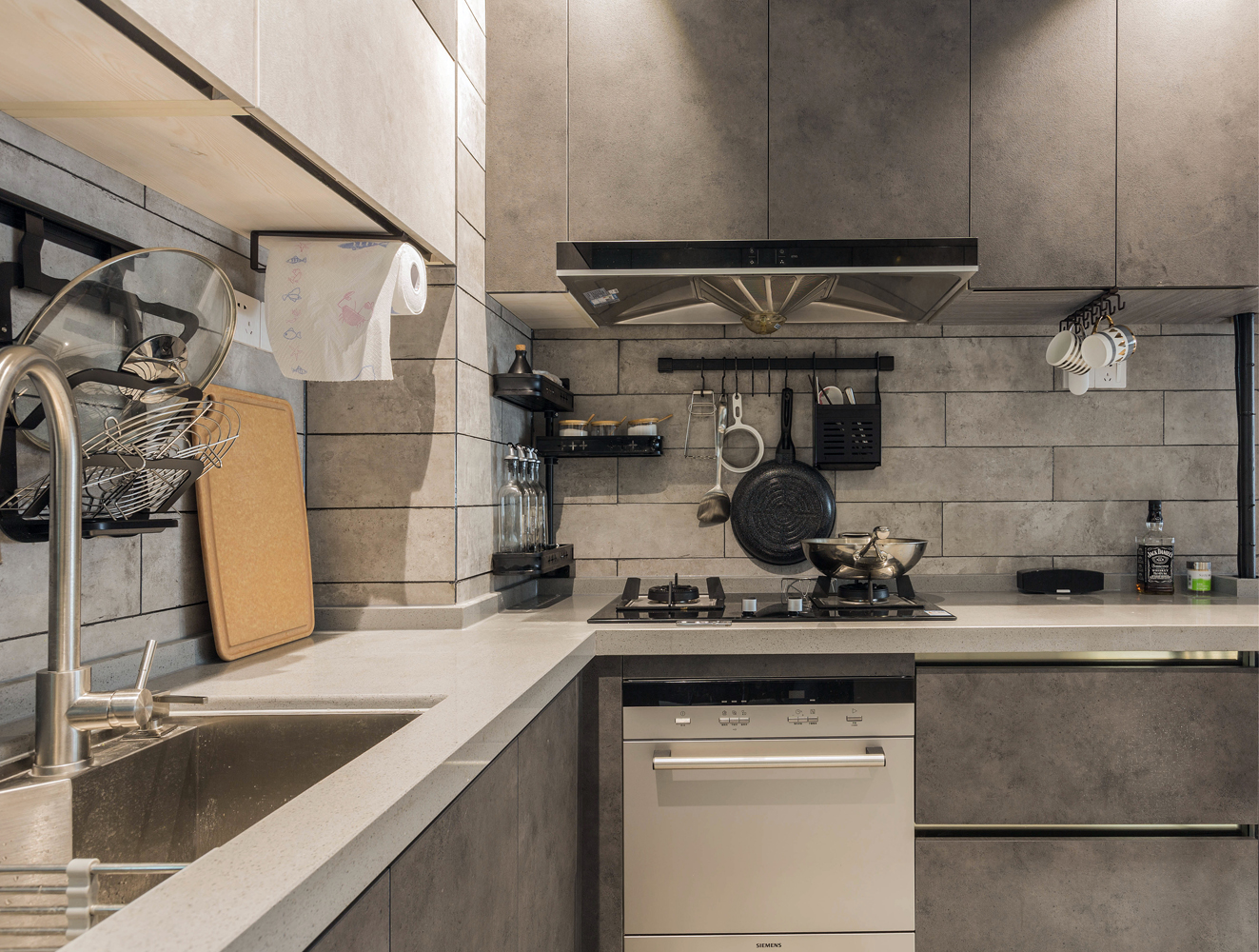 而且我们还可以看到其实这个深灰色的装饰,还是很时尚的~也很耐看~