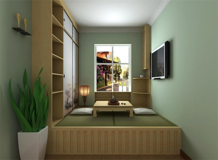 小卧室装修榻榻米时,对于墙面可以选择明亮的颜色,这样可以在视觉上给人一种宽敞明亮的感觉,另外小卧室面积有局限性,榻榻米装修选择明度和纯度较低的灰色调为佳。